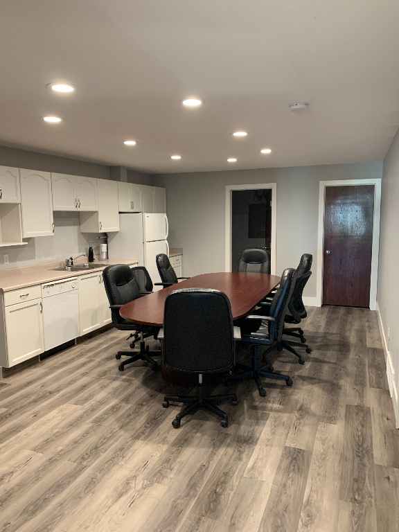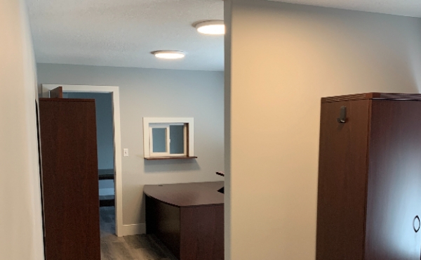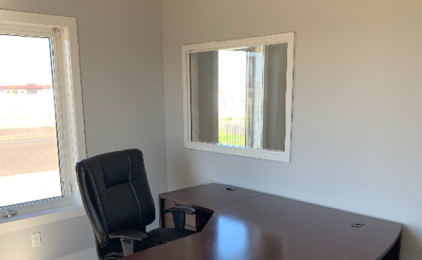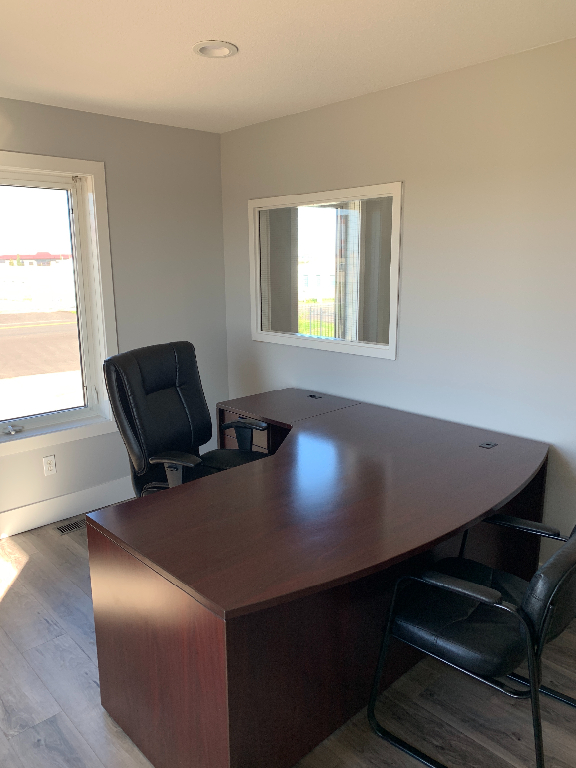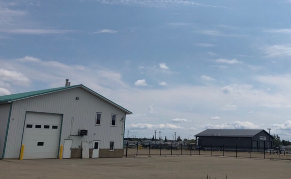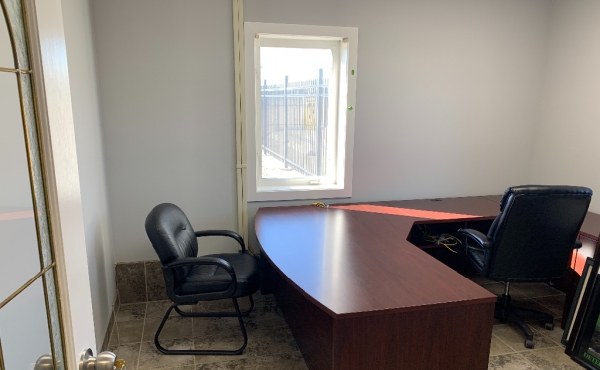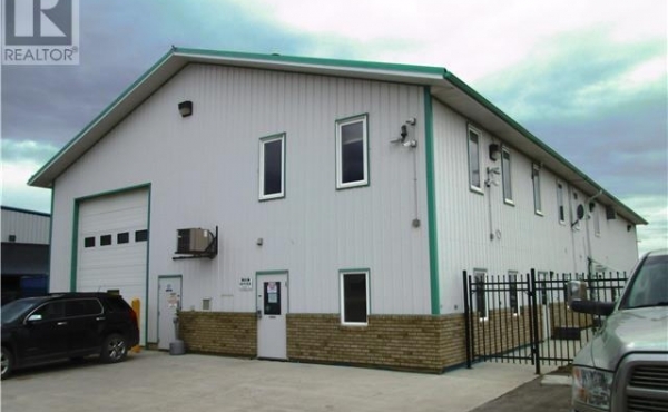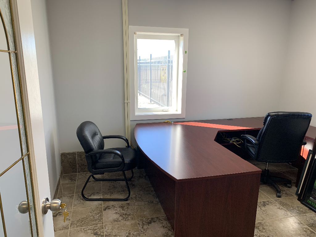 6450 sq. ft. office/shop. 9 offices, plus reception, boardroom and 2 lunchrooms all newly renovated with fresh paint. 1,450 sq. ft. office space upstairs (4 offices) and 1,250 sq. ft. downstairs of deluxe offices (4 offices) which includes all office furniture plus reception area, shower washroom and boardroom with large table. Offices are air-conditioned. Shop Space - 3,750 sq. ft., comes with a hotsey washer and air compressor. One drive-thru bay and one half bay. Sumps in shop. 640 sq. ft. Cold storage. Front parking will be paved. On City sewer and water. Electric door openers on shop doors. Yard is fully fenced with electric gates, graveled, lit yard with rail plug for 24 units.