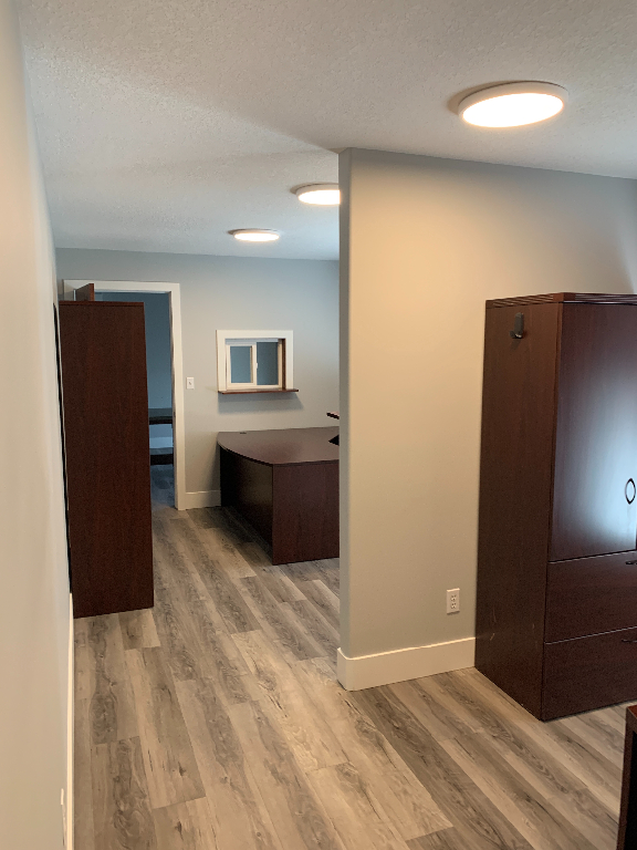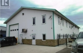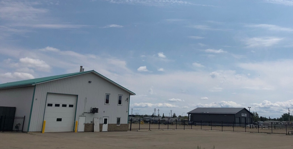 6450 sq. ft. office/shop. 9 offices, plus reception, boardroom and 2 lunchrooms all newly renovated with fresh paint. 1,450 sq. ft. office space upstairs (4 offices) and 1,250 sq. ft. downstairs of deluxe offices (4 offices) which includes all office furniture plus reception area, shower washroom and boardroom with large table. Offices are air-conditioned. Shop Space - 3,750 sq. ft., comes with a hotsey washer and air compressor. One drive-thru bay and one half bay. Sumps in shop. 640 sq. ft. Cold storage. Front parking will be paved. On City sewer and water. Electric door openers on shop doors. Yard is fully fenced with electric gates, graveled, lit yard with rail plug for 24 units.